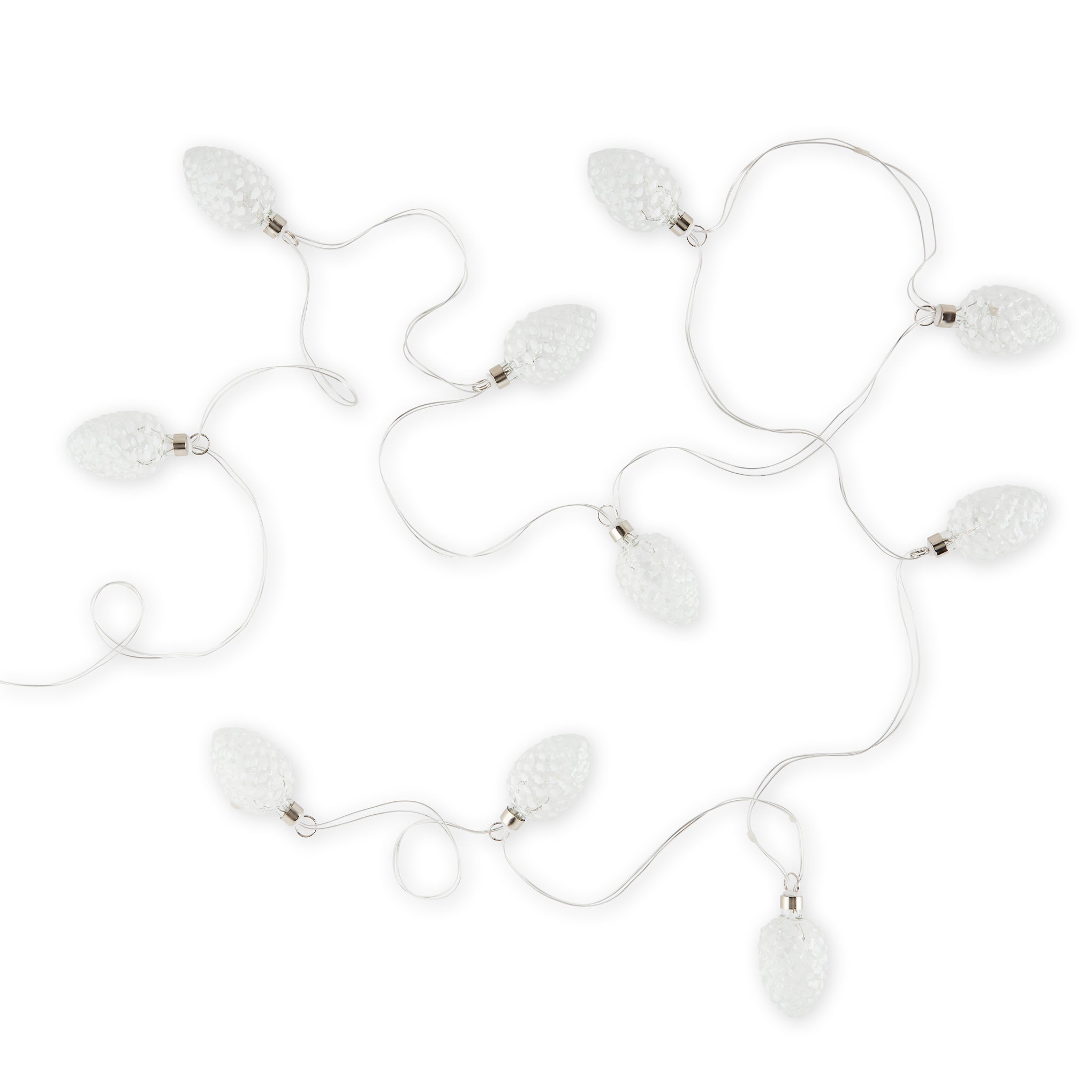 These festive LED Holiday String Lights are made from mouth-blown glass. Each string measures 9′ in length with ten bulbs each. Includes timer function with six hours on/18 hours off. Requires three AA batteries (not included).