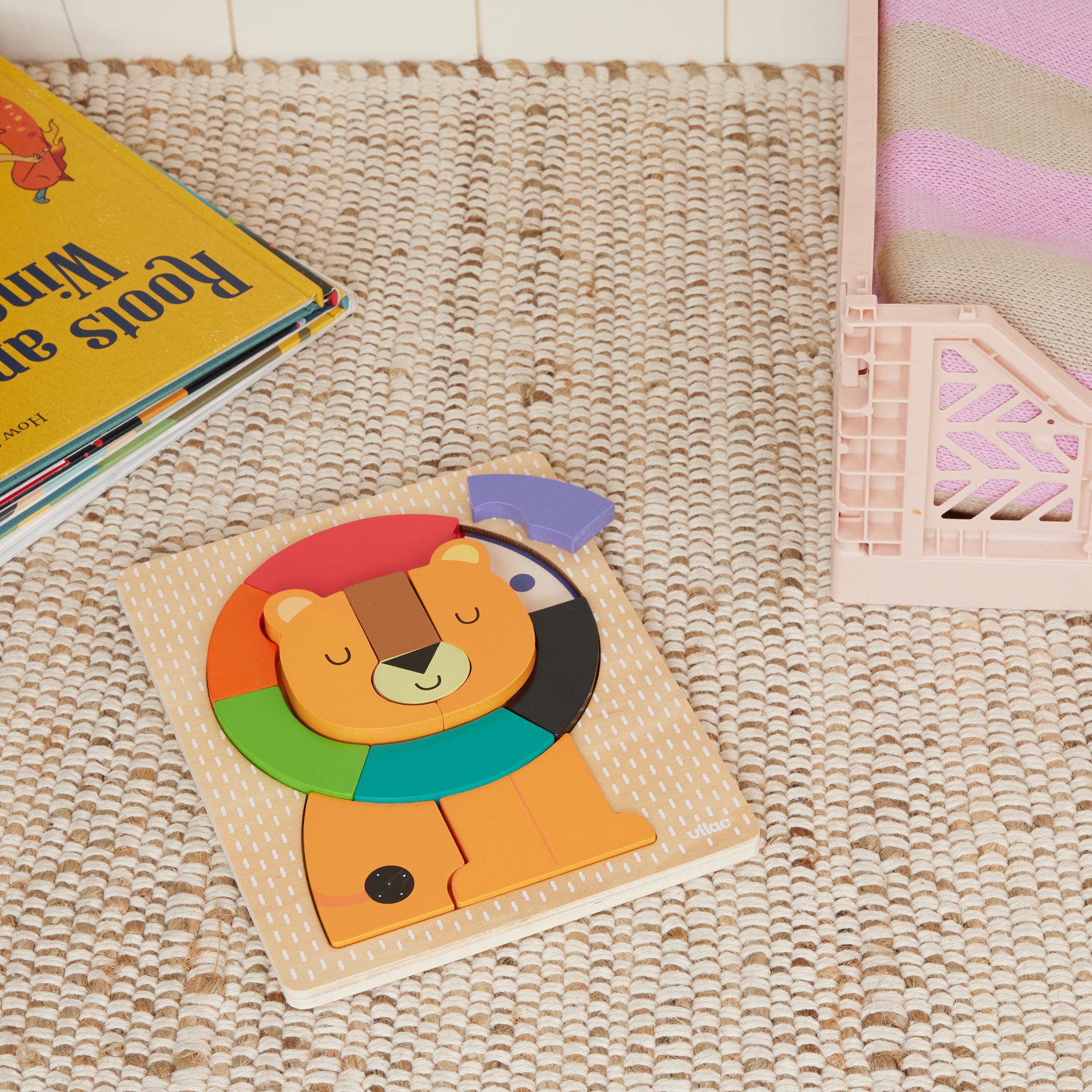 Delight in the whimsical charm of our 17-piece Lion Wooden Puzzle. adorned with Andy Westface’s colorful artwork. This adorable wooden puzzle is sure to captivate the little ones as they embark on an exciting journey of problem-solving. Each piece fits snugly onto its designated colored location. providing a fun exercise for fine motor skills and encouraging observation and attention. The Lion Wooden Puzzle aims to promote playful learning. foster the development of essential skills. inspire a sense of achievement. and fill young hearts with pride as they unveil the final result. Recommended for ages 2+. Board measures: 0.2h x 7w x 8.75d.