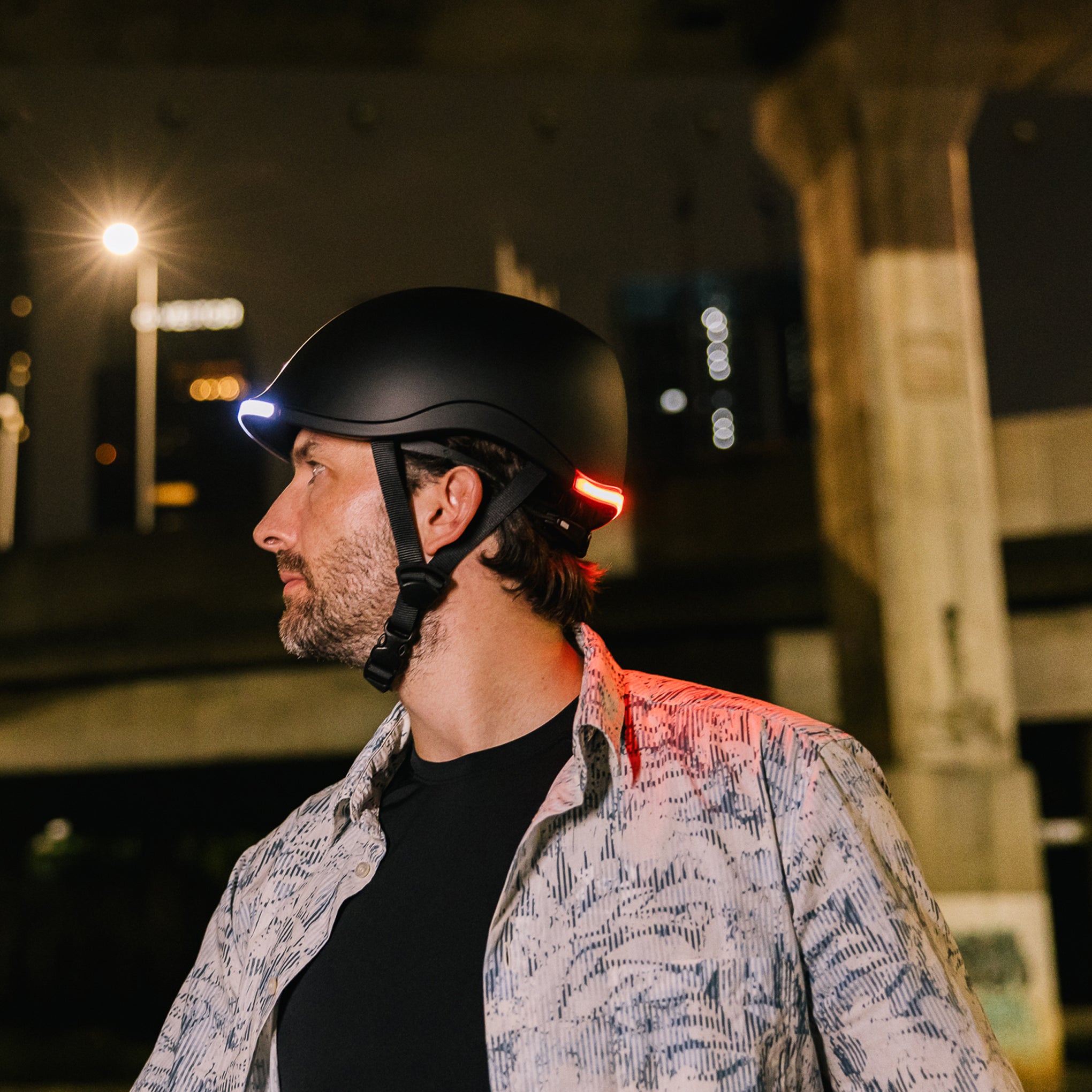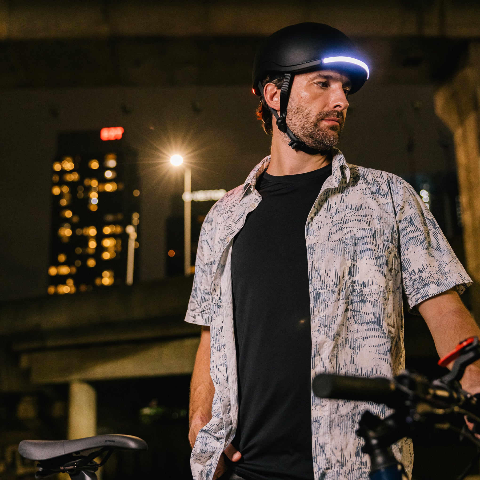 Ride smarter and safer with the Lumos Nyxel Standard Bike Helmet. Its sleek design and high-tech features??front headlight. automatic back brake light. back turn signals lights??make this helmet perfect for urban bike riders. The helmet’s safety system includes smart visibility and advanced head protection in a design that’s USB-C rechargeable.