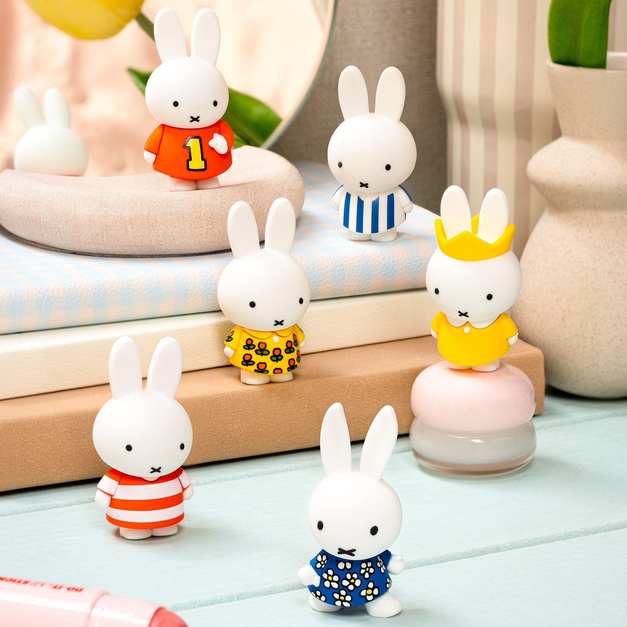 Collect all six vinyl Miffy figures. each dressed in a different outfit. with this blind box series. Your Miffy figure will be chosen for you randomly. Each one measures 2.25h x 3diam. Ages 15+. **