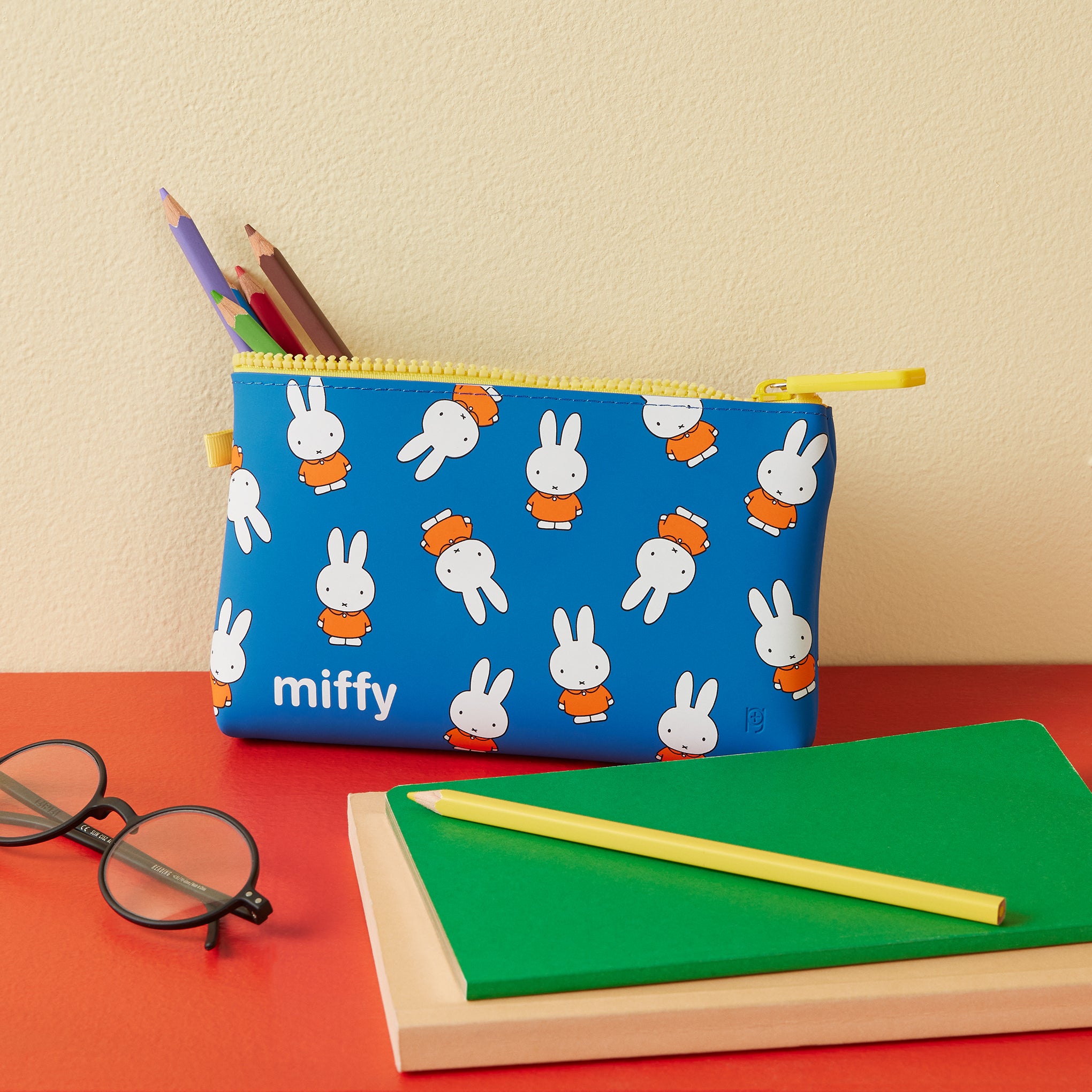 Happy 70th birthday to the iconic white rabbit created by Dutch artist Dick Bruna in 1955. Celebrate this milestone with the Silicone Zip Flat Pouch printed with Miffy in her signature orange dress. Designed in Tokyo and made of soft silicone. this zip-top style is flexible. water-resistant and easy to wipe clean. making it an ideal travel companion. Organize daily items like cosmetics. tech accessories or stationery. The Miffy Zip Flat Pouch measures 4.5h x 7.5w x 1d.