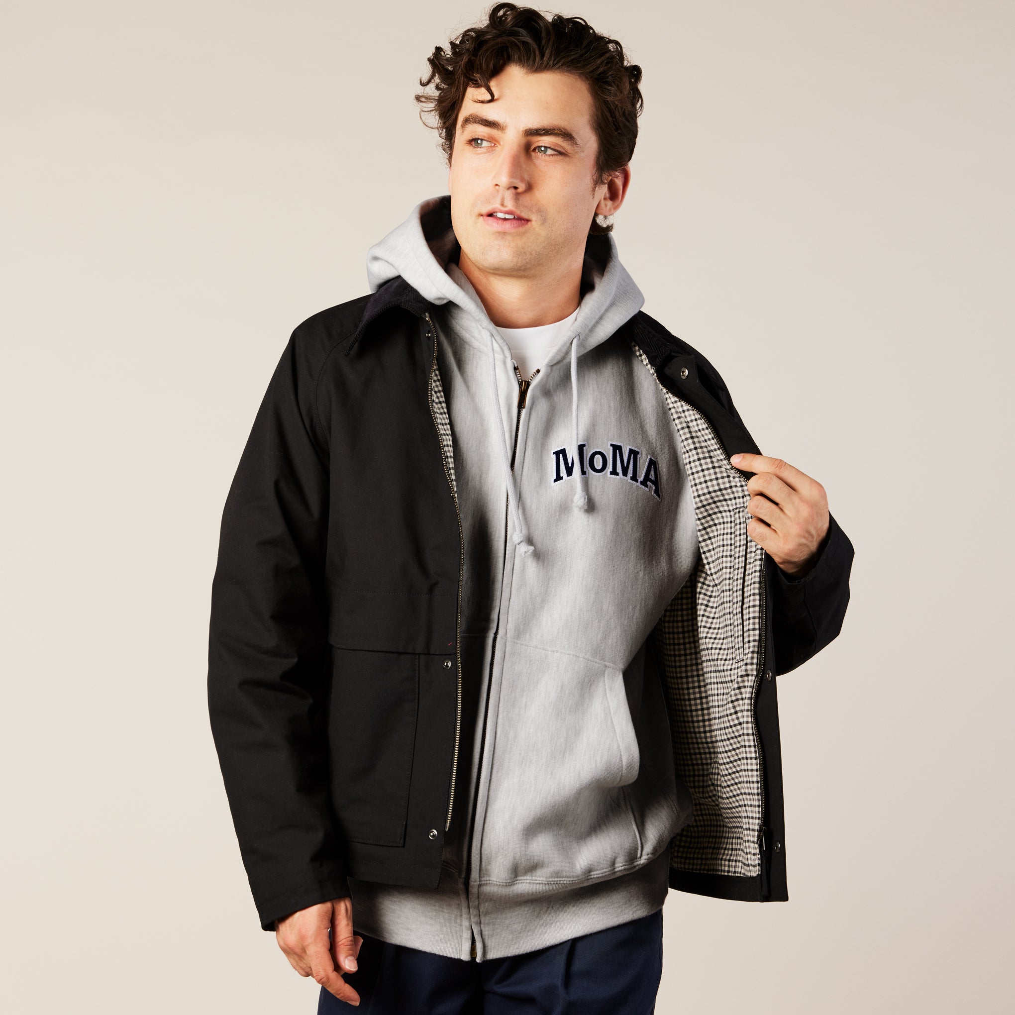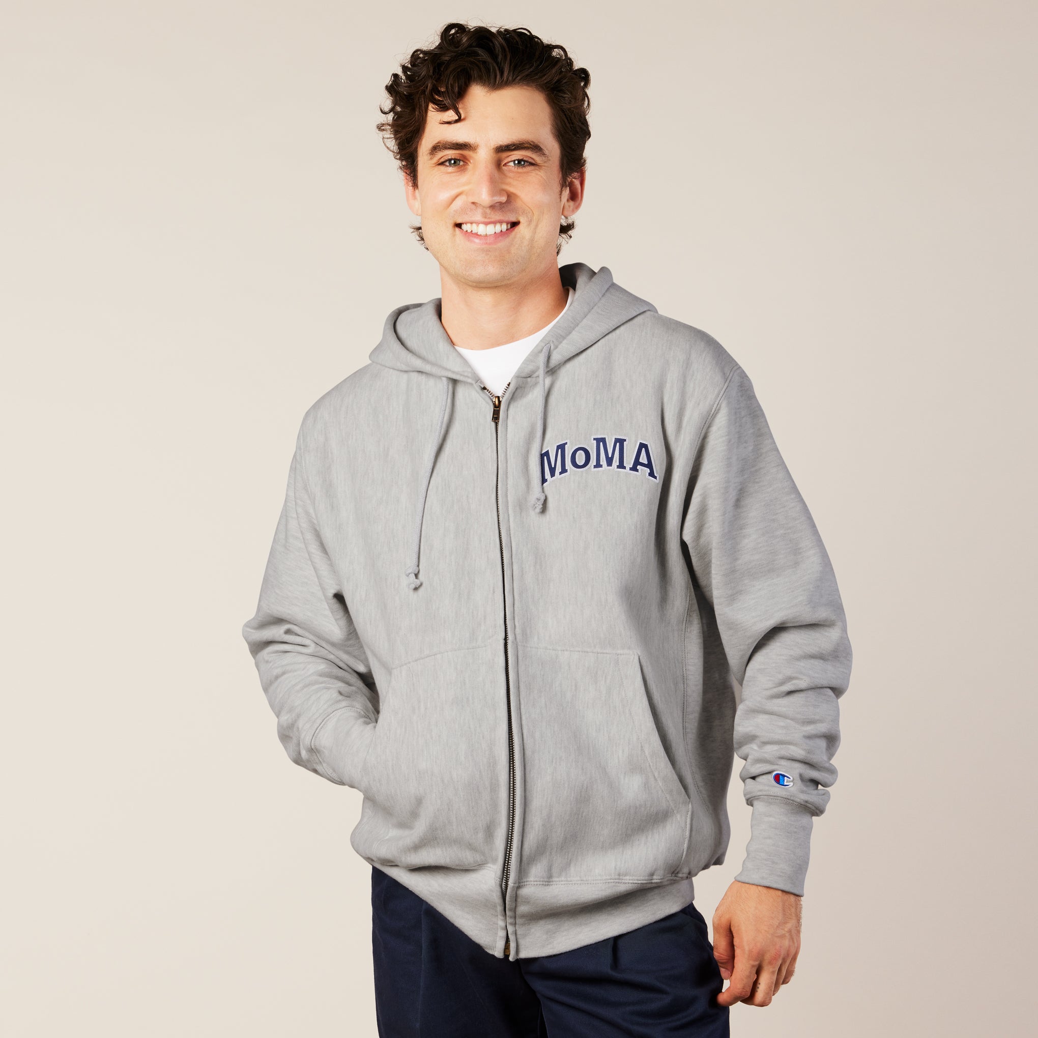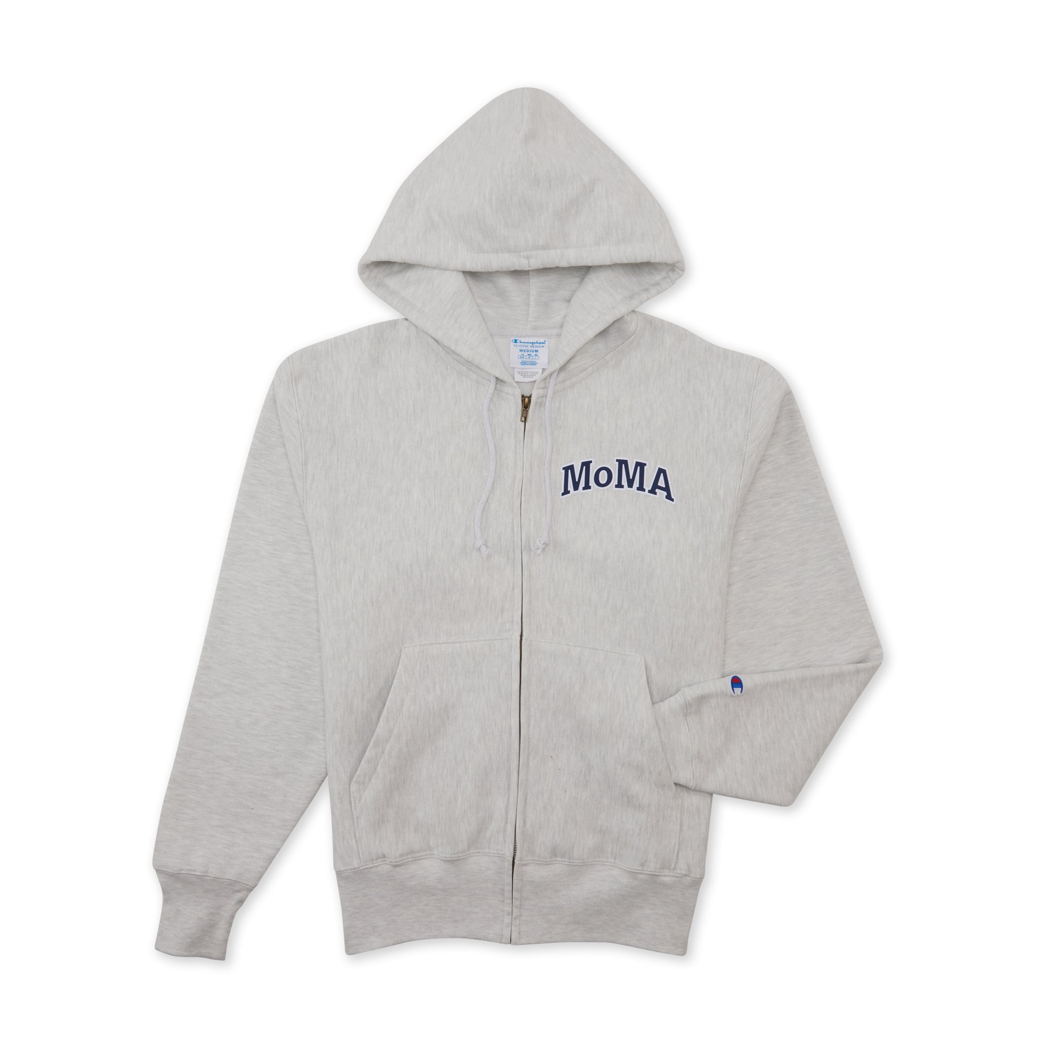 MoMA Exclusive: Everyone’s favorite hoodie. now in a zip-front version. Champion first produced their hoodie sweatshirt in the 1930s to keep athletes warm during training. Our zip-up version has MoMA appliquéd in classic college-style lettering. An original version of a Champion Hoodie from the 1980s is an object in MoMA’s collection. The MoMA Champion Zip-Up Hoodie is available in sizes Small through X-Large.
