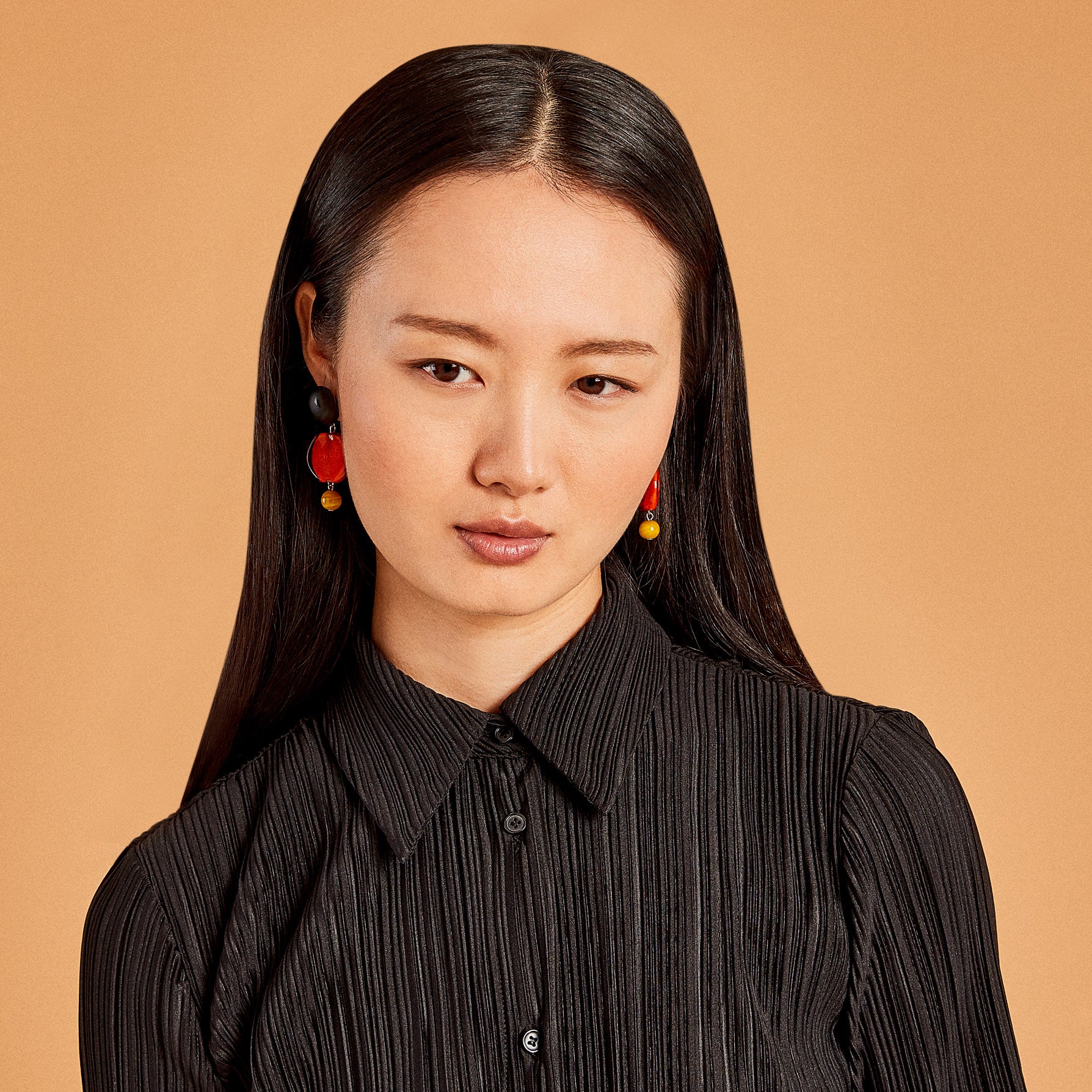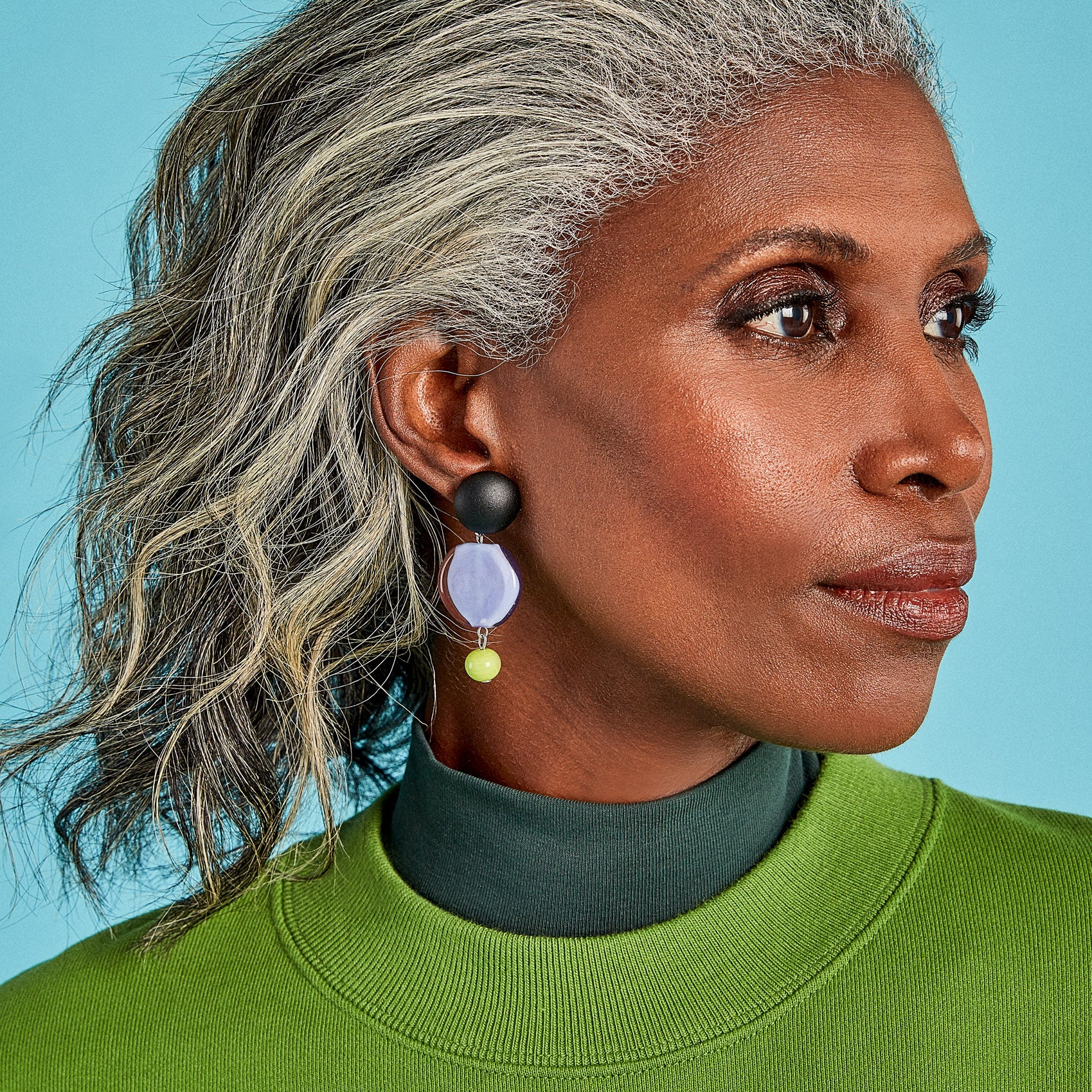 MoMA Exclusive: Working in the ancient Murano glass tradition that has been handed down within their family. the Sent sisters. Marina and Susanna. combine modern colors. shapes and finishes with traditional craftsmanship resulting in highly original glass jewelry. Each pair of Murano Drop Earrings is made in Italy. features sterling silver posts and is composed of a solid matte black bead. semi-translucent colorful glass bead. and a solid bead in contrasting color. Center bead measures 1diam.