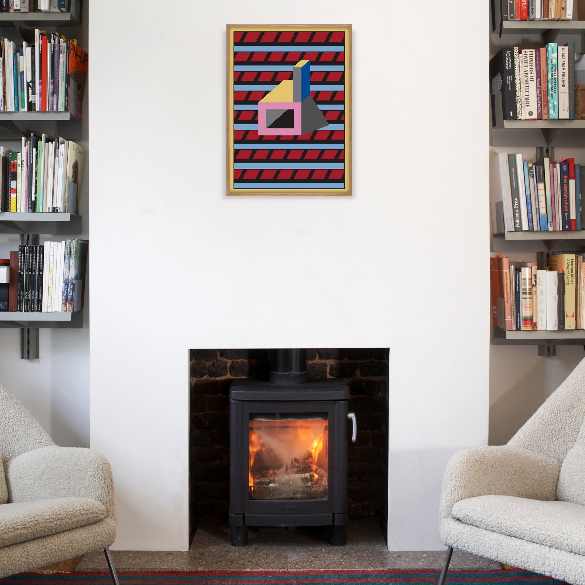 MoMA Exclusive: This high quality framed lithograph featuring Manifesto 5. 2021 by Nathalie Du Pasquier is printed on 270gsm paper with spot gloss UV high build varnish. The print is framed using a wax oak molding in a natural finish and fitted with Plexiglass. Returns are not accepted. Nathalie Du Pasquier has work in MoMA’s collection. This Nathalie Du Pasquier Manifeso 05 Framed Print measures 27.5h x 20w x 1d.