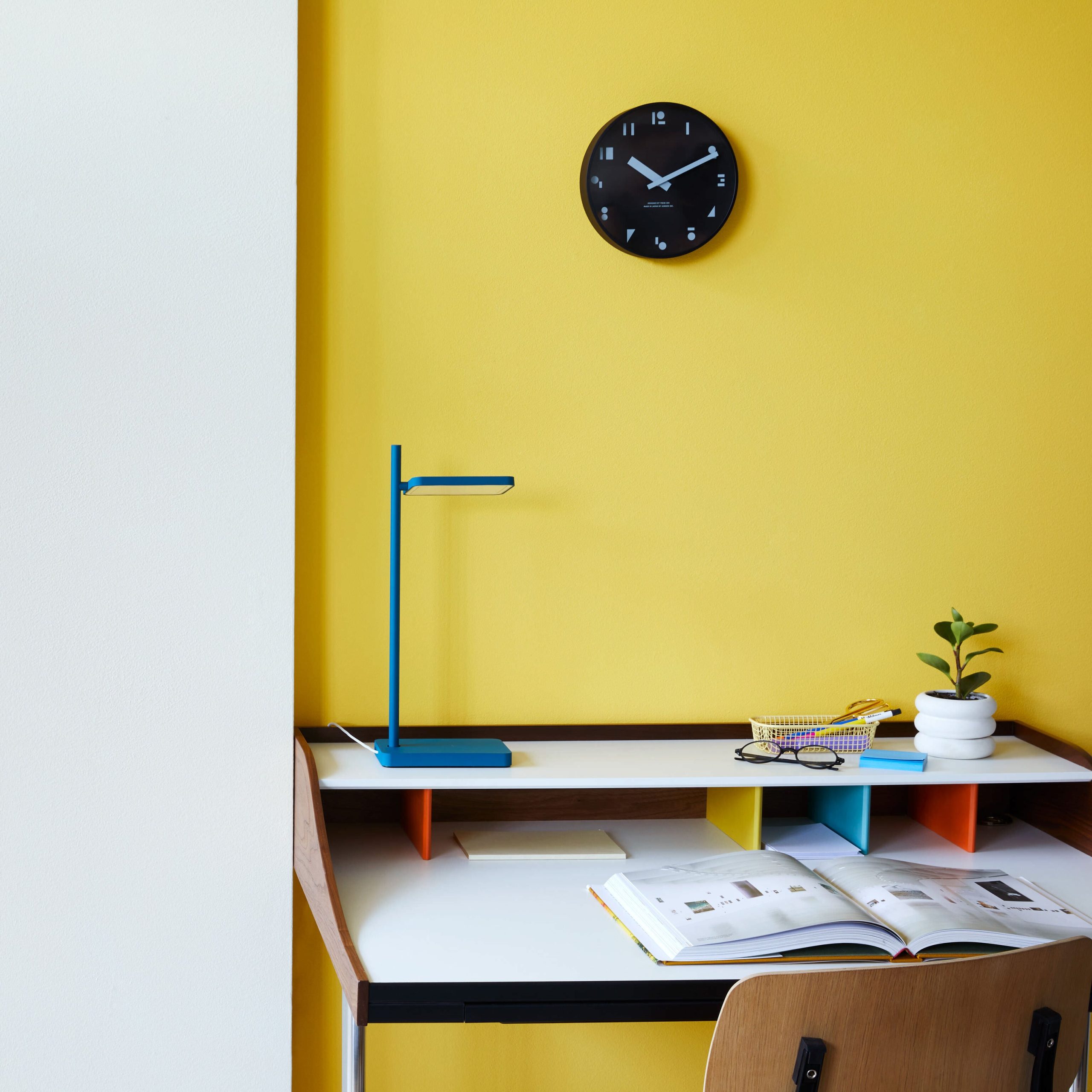 The Swag Leg Desk has a sculptural look. with signature curved metal legs. The desk offers colorful cubbyholes at the back for organization. with one slot for a 15 laptop. It also features two molded pull-out drawers and a grommet for cord management. The Nelson Swag Leg Desk was designed by George Nelson. whose work is featured in the Museum’s collection. The desk requires simple assembly. Made by Herman Miller®.