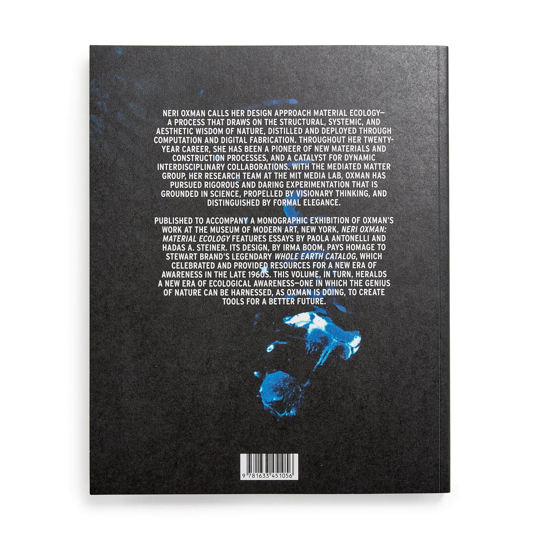 Published to accompany a monographic exhibition of Oxman’s work at The Museum of Modern Art. New York. Neri Oxman: Material Ecology features essays by Paola Antonelli and Hadas A. Steiner. Its design. by Irma Boom. pays homage to Stewart Brand’s legendary Whole Earth Catalog. which celebrated and provided resources for a new era of awareness in the late 1960s. This volume. in turn. heralds a new era of ecological awareness—one in which the genius of nature can be harnessed. as Oxman is doing. to create tools for a better future. 192 pp.; 220 illus.
