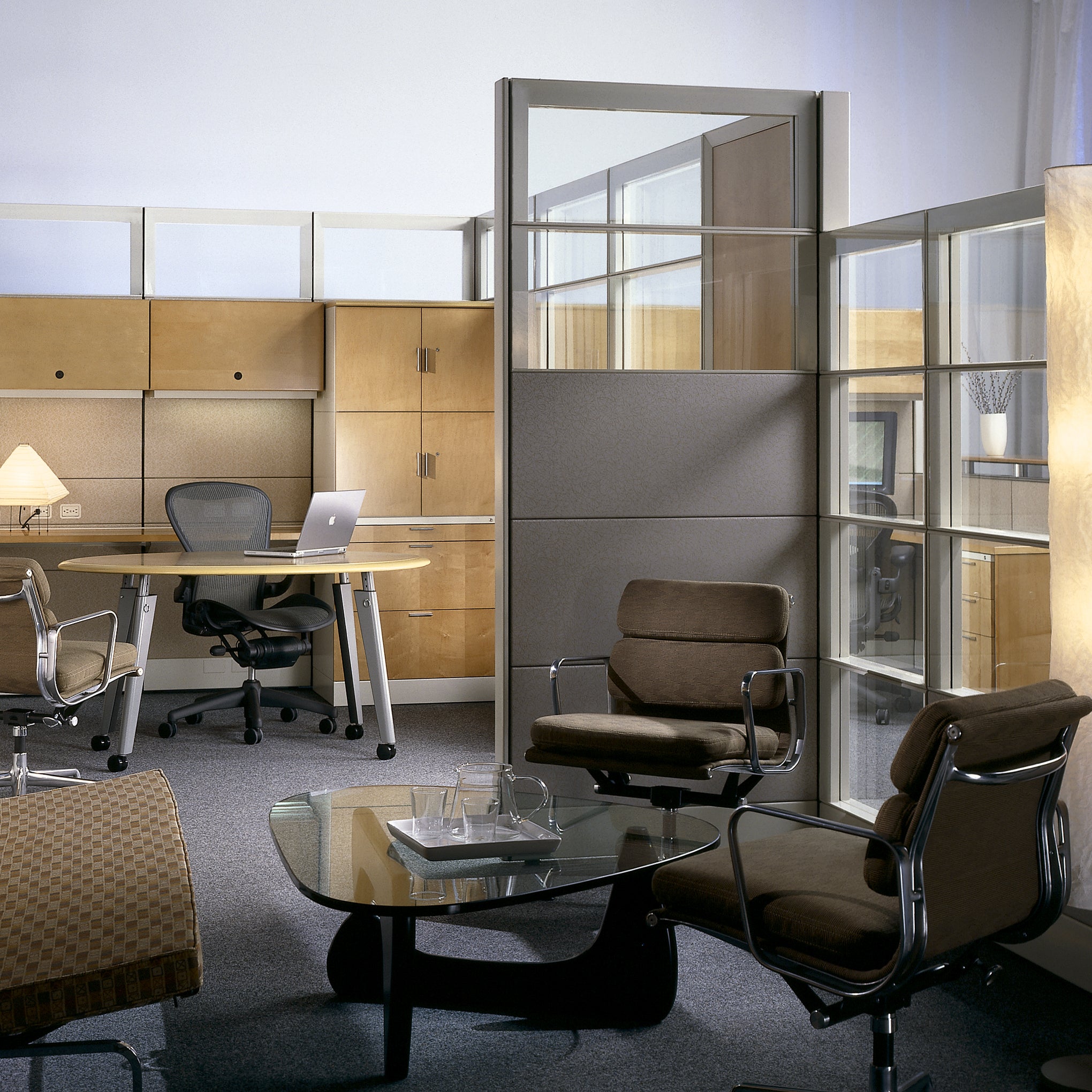 The Noguchi Coffee Table was originally designed in 1939 as a commission from the president of MoMA and is now featured in the Museum’s collection. Noguchi modified the design in 1944 to accompany an article by designer George Nelson. entitled. How to Make a Table. This design reflects the biomorphic imagery of Noguchi’s contemporary sculpture. It consists of just three pieces: a free-form plate-glass top with flat polished edges. and a self-stabilizing tripod made of two interlocking curved legs of solid or ebonized walnut. With its successful balance of sculptural form and everyday function. this piece is one of Isamu Noguchi’s best-known designs. Made by Herman Miller®. Some assembly required.