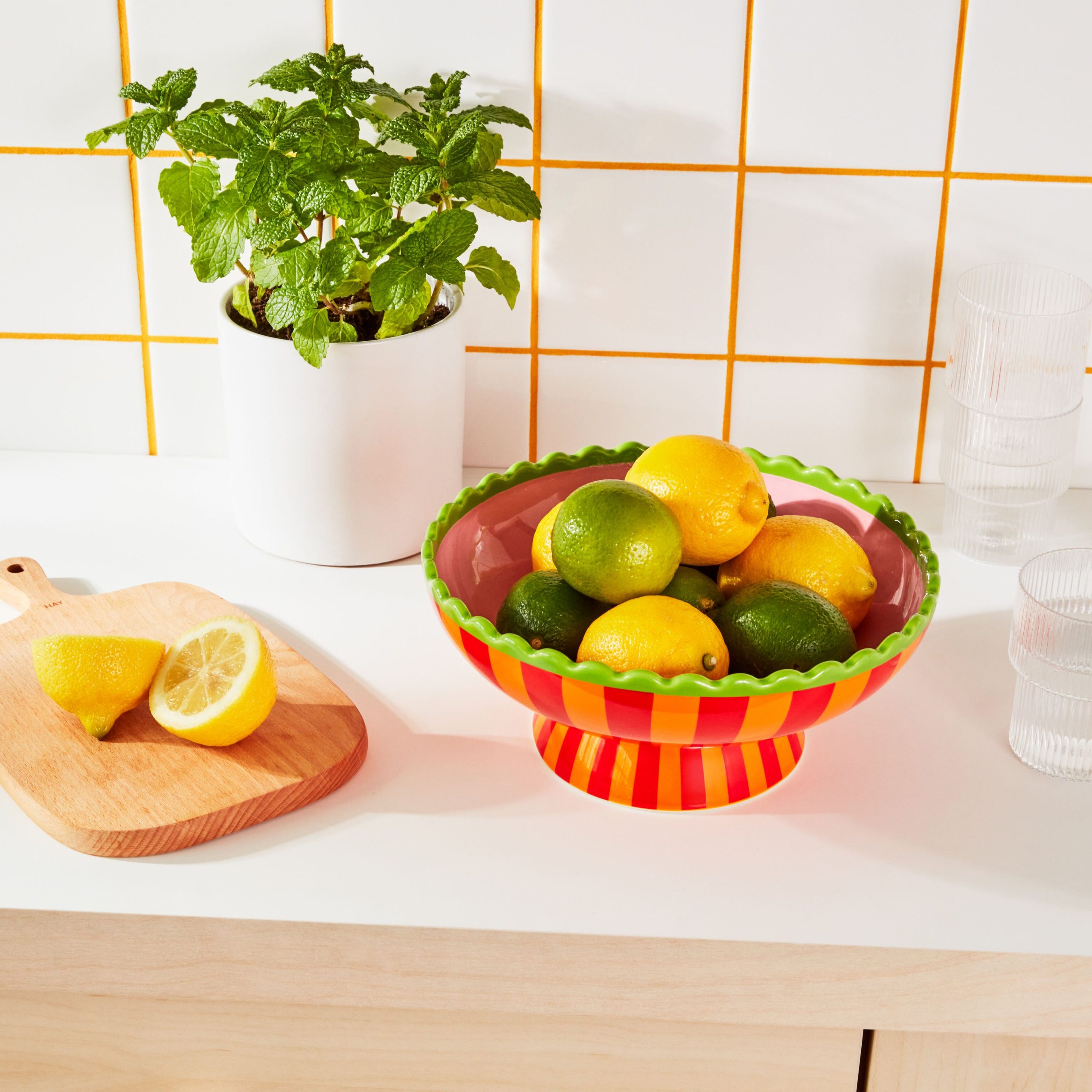 MoMA Exclusive: This vibrant Oorun Didun Ceramic Serving Bowl was designed by Yinka Ilori. a London-based multidisciplinary artist who specializes in fusing his British and Nigerian heritage to tell new stories in contemporary design. His Oorun Didun Bowl is inspired by nature and the feelings that arise from encounters with the natural world. Oorun Didun comes from the Nigerian expression for sweet sun. and the designs express the optimism and playfulness that characterizes his work. His designs are meant to invite you to gather together in community and to set the stage for celebration. The Oorun Didun Ceramic Serving Bowl is food-safe and can be used to hold fruit or serve salads??or just display it as a delightful objet anywhere in your home. It measures 4h x 9.25diam.