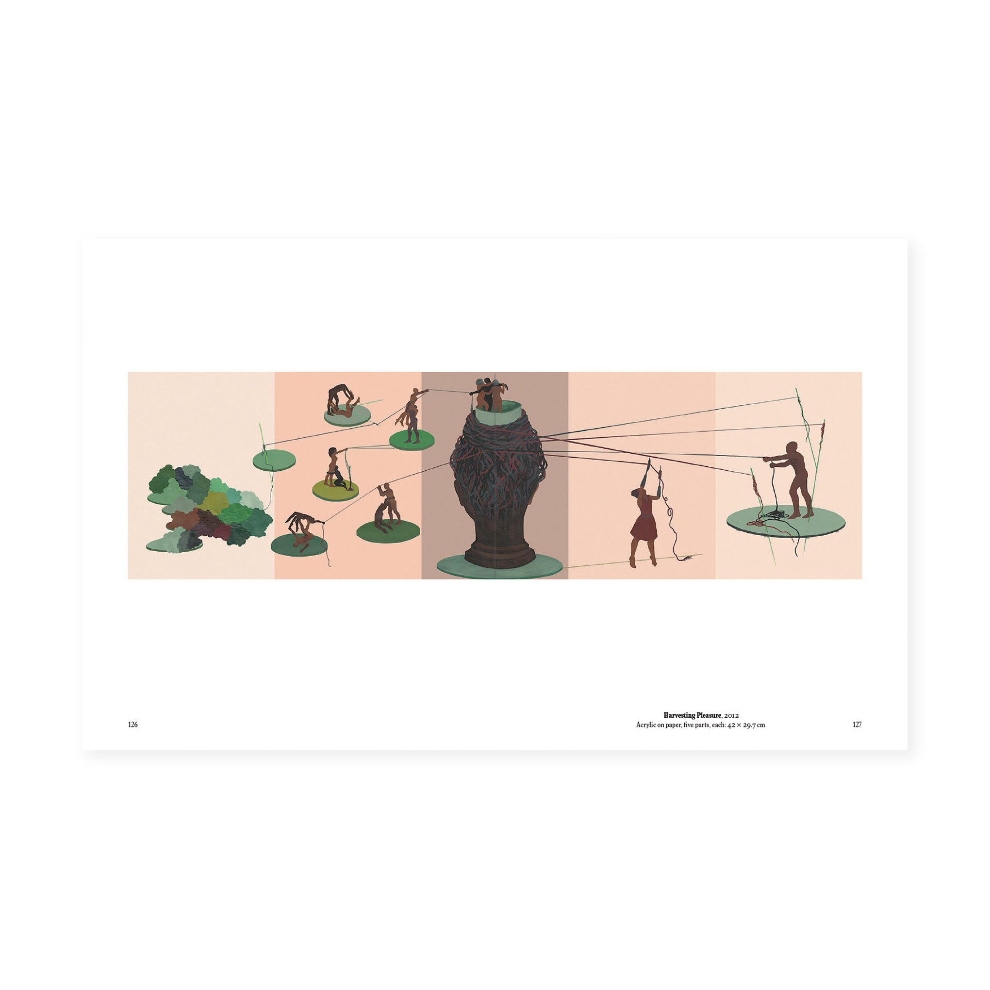 Delving into the artist’s ritualistic practice of mind-mapping. readers are invited to explore the cultural and historical references that inflect Nkanga’s interest in legacies of empire. the earth’s natural resources. the weight of memory and the human imagination’s possibility to conjure social change. The title. Stitched Dreams. comes from the name of her first drawing. made in 1994. Otobong Nkanga (born 1974) grew up in Lagos and Paris and is currently based in Antwerp. She studied fine and performing arts at Obafemi Awolowo University in Ife-Ife. the École nationale supérieure des Beaux-Arts in Paris and DasArts in Amsterdam. Nkanga received the Special Mention Award at the 58th Venice Biennale.