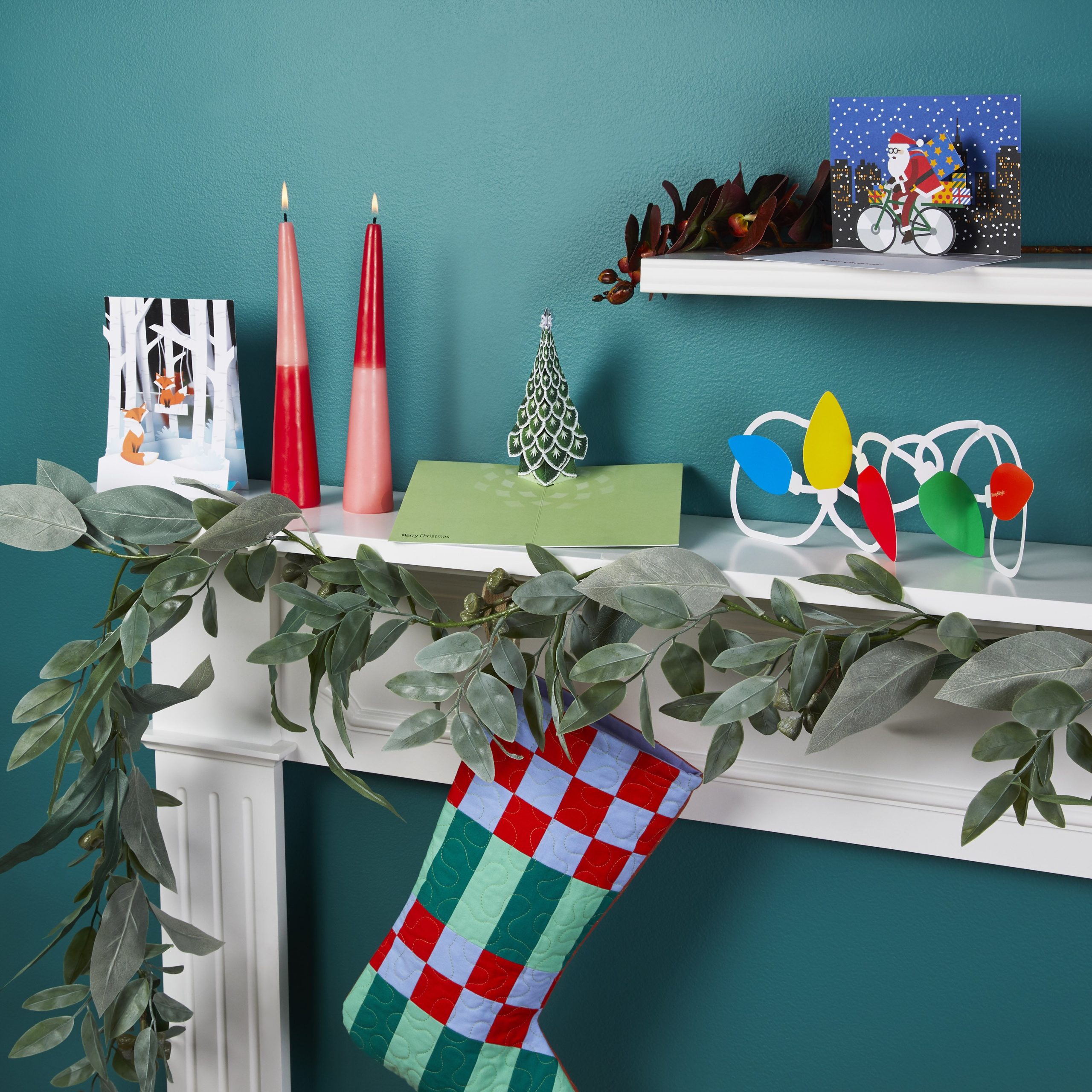 MoMA Exclusive: Merry Christmas. Eight cards with pop-up elements. White envelopes. For this design. a silver-etched Christmas tree pops up when the card opens. created by artist and paper engineer Peter Dahman.These 3D cards are designed with the utmost attention to detail and quality. all while incorporating a variety of design elements that elevate the medium of paper and greeting card design. Each card elicits whimsy and an element of surprise. Each card measures 6.25h x 4.5w.
