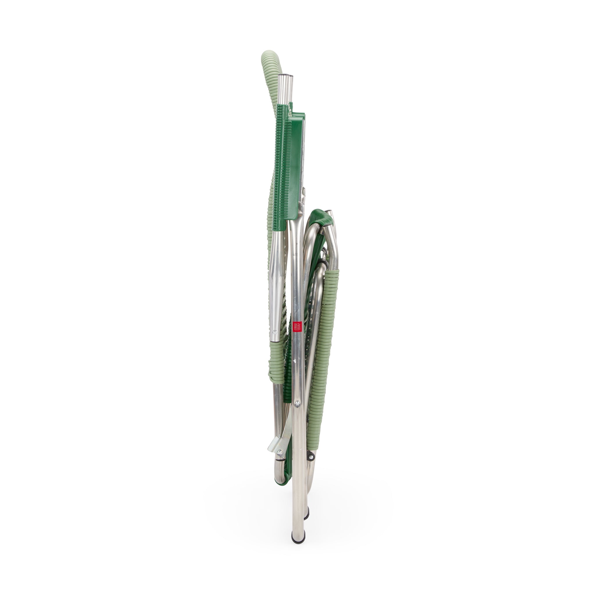 The frame is made from ultra-lightweight aluminum making it the perfect lounge chair to fold up and carry to the beach and outdoor events—or it can just live permanently on your patio. deck or in your backyard. The Spaghetti Outdoor Lounge Chair has a backrest with six adjustable positions and a footstool with two positions. The footstool also folds under the seat when not needed. The chair has a spacious surface but folds up compactly for easy storage. Holds up to 265lbs in body weight. Made in Italy.