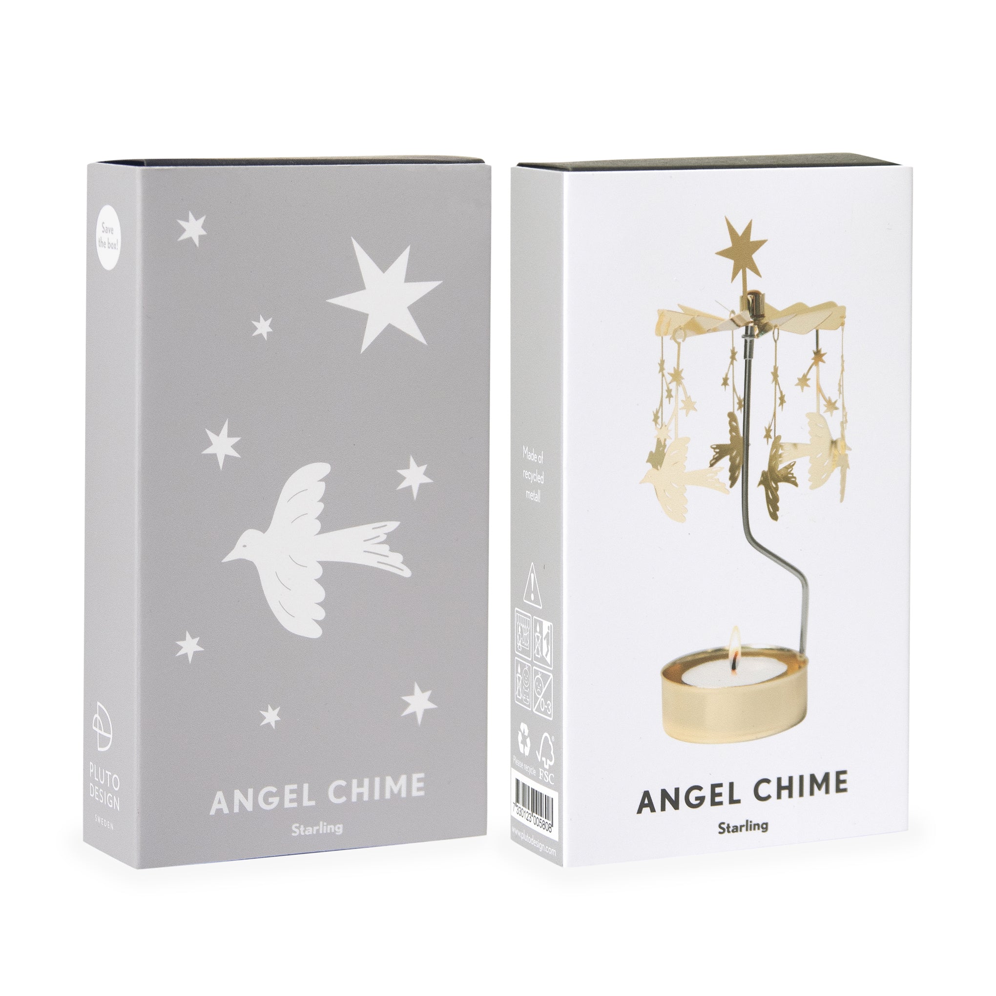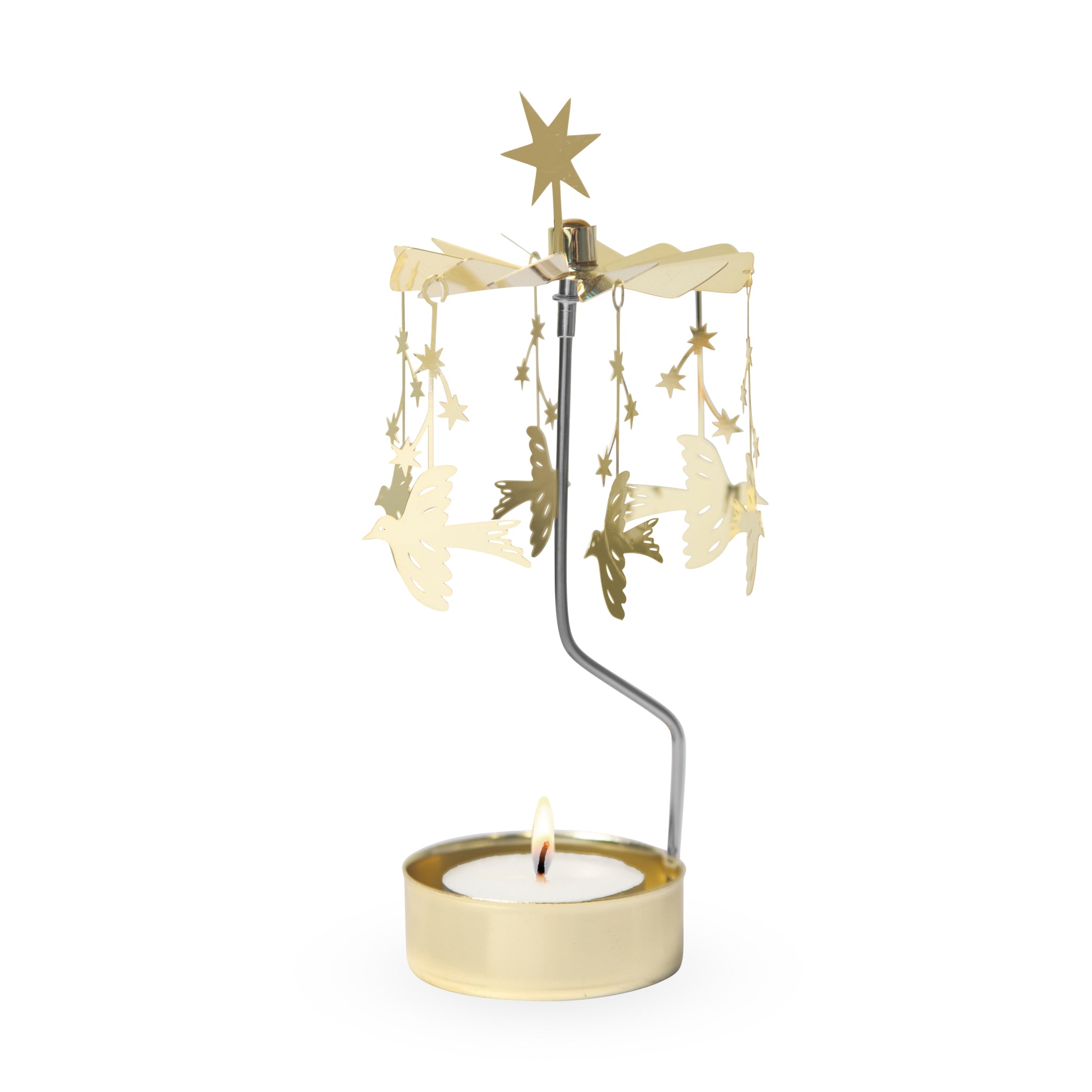 This magical Starling Rotary Tea Light Candle Holder features a tree-inspired mobile that rotates when a lit votive candle is placed in the stand’s holder. The tree is adorned with starling bird and star motifs. Candles not included. The Starling Rotary Tea Light Candle Holder is made in Sweden from plated iron and measures 6h.