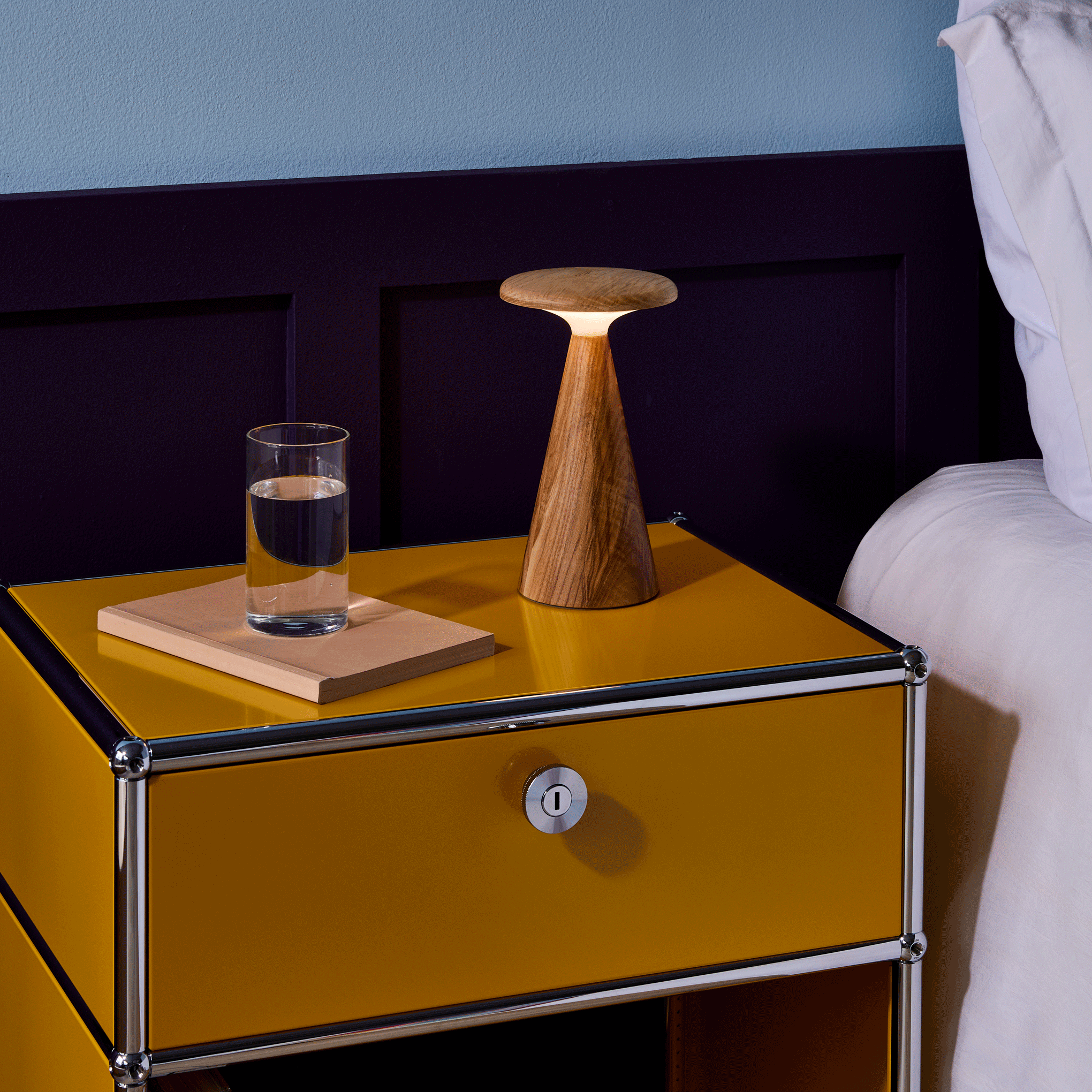 Crafted from white ash wood. the Sylva Portable Lamp is distinguished by a modern mushroom silhouette and comforting ambient light. Tap the top of the lamp to turn on the warm. white lamp. Tap it again and the Sylva will cycle through seven lights in red. blue. orange. yellow. green. purple and fuschia. The lamp charges with the included USB-C cable. Choose from Large or Mini styles (each sold separately).