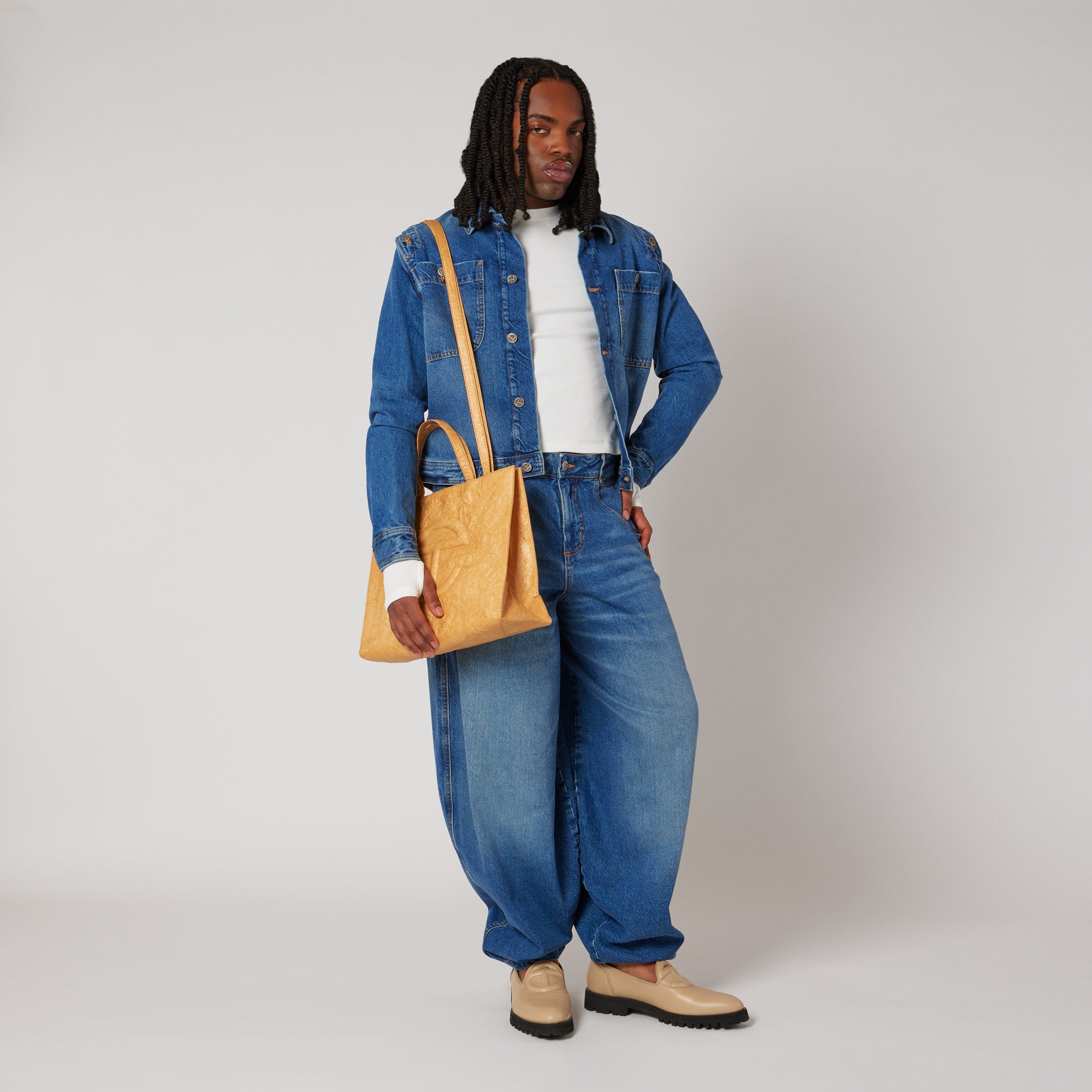 MoMA Exclusive: Dubbed the Bushwick Birkin. this statement piece is like a popular secret among the Brooklyn style set. The instantly recognizable Telfar Shopping Bag has earned a spot as an object in MoMA’s collection. The unisex bag was conceived by Liberian-American fashion designer Telfar Clemens who also has work featured in the Museum’s Pirouette: Turning Points In Design exhibition. on view through October 18. 2025. This interpretation is exclusive to our customers and made of Tyvek?. a durable and waterproof material traditionally used in building construction. The signature style is available in three sizes. Small (for the party and the afterparty). Medium (fits a laptop on your daily commute) and Large (perfect as a weekender or carry-on). Each one features handles and crossbody straps. an embossed T logo. plus a main compartment with magnetic snap closure.