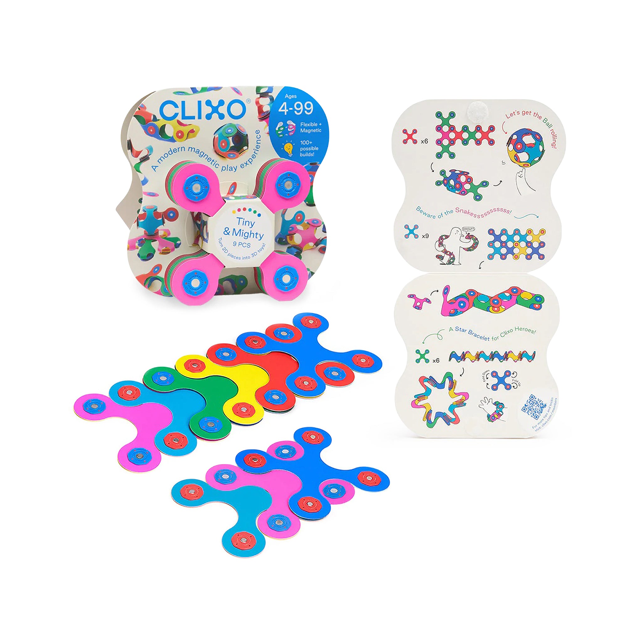 Don’t be fooled by its compact size — this 9-piece magnetic set opens up a universe of creativity. The signature Quad shapes flex. snap. loop. stack. and bend to bring your ideas to life. Whether you’re building a snake. a crown. a ball. or wearable art. you can explore over 100 possible structures. Crafted from durable. flexible materials and strong yet safe magnets. Clixo encourages open-ended play that stimulates STEAM thinking. spatial awareness. and playful experimentation.