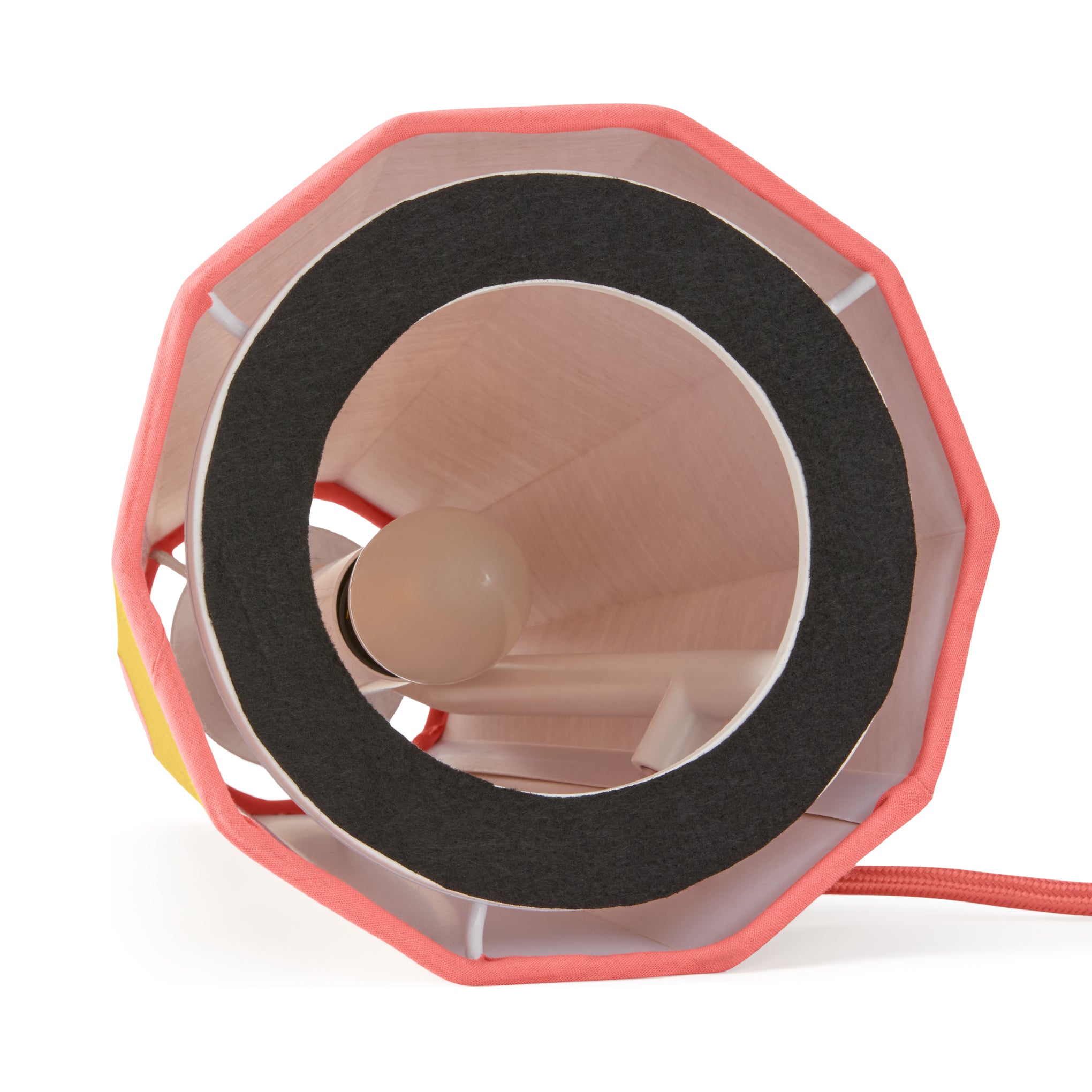 MoMA Exclusive: With a unique construction handcrafted from custom textiles. the Trimme Lamp enriches any environment with its geometric form and captivating glow. Danish designer Toni Rie created a dual illumination design that includes a light source under the shade as well as within the lamp’s base. Named after the Danish word for trim. the Trimme Lamp operates via a standard plug-in and requires simple assembly. Two E12. 2W bulbs are required (not included). It measures 14.6h x 12.6diam.