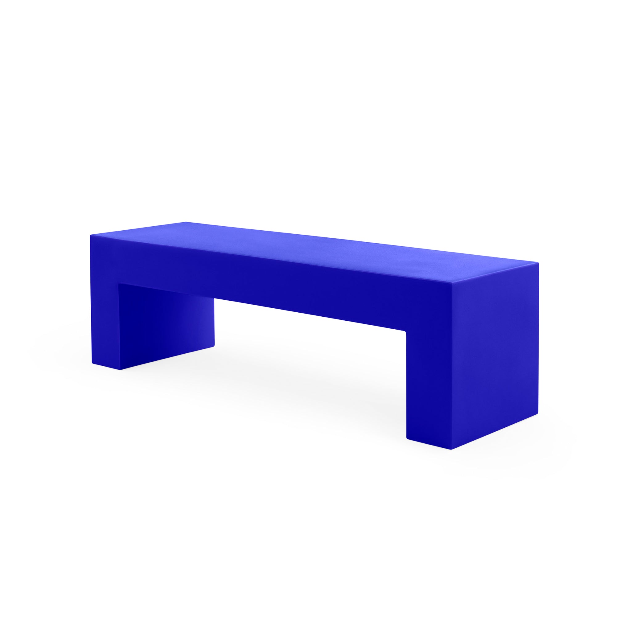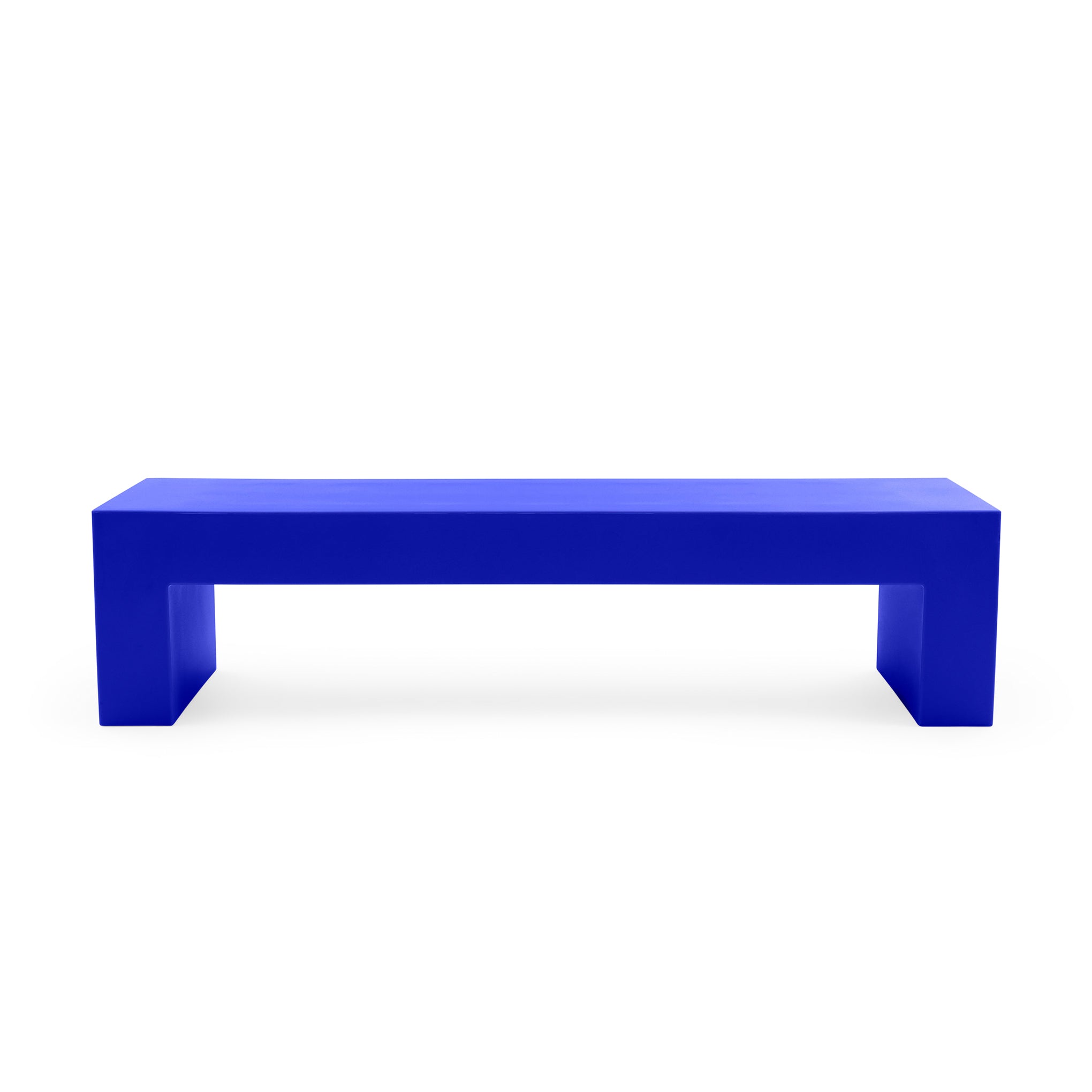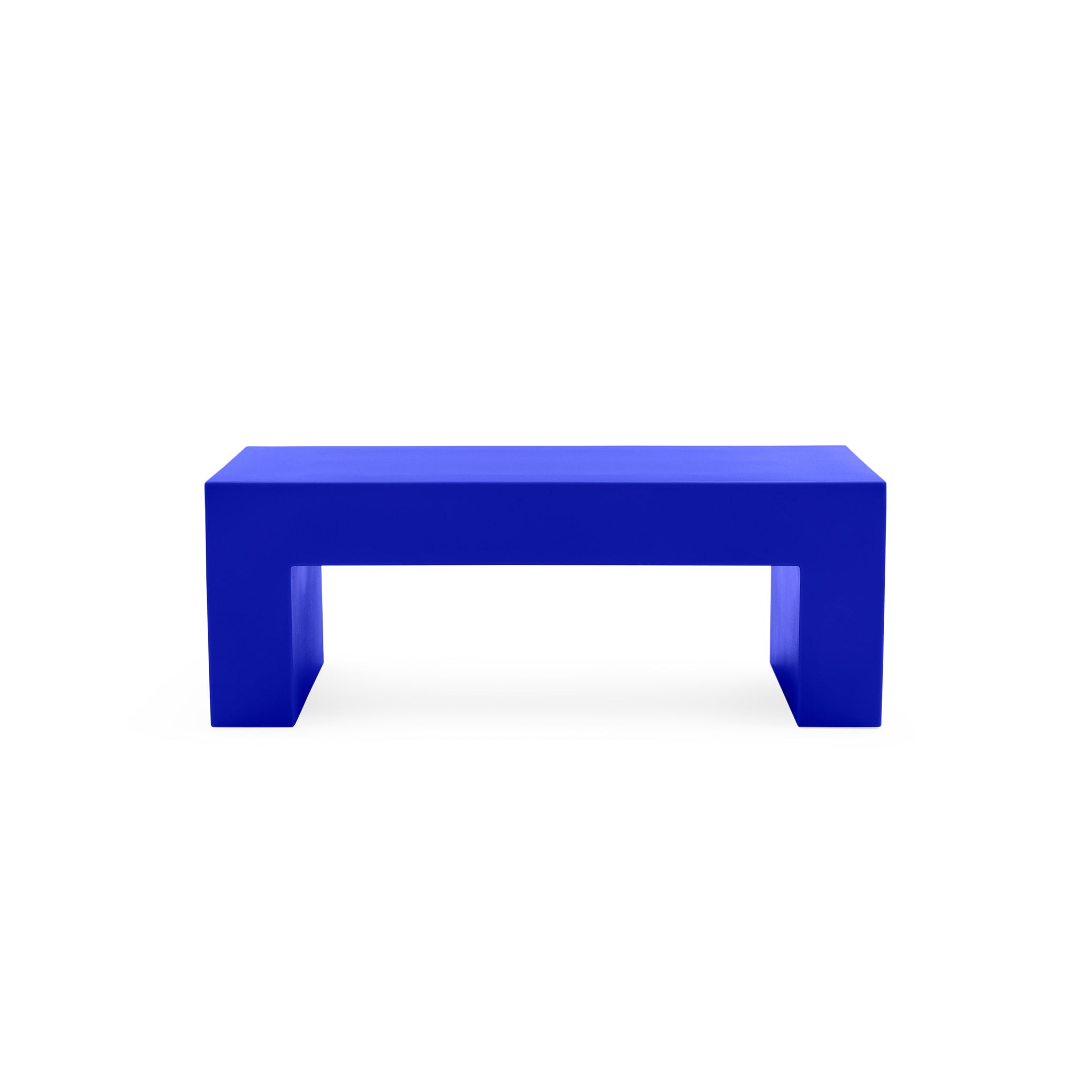 Distinguished by a bright pop of color. this chunky. minimalist bench was conceived by Lella and Massimo Vignelli. designers with work in MoMA’s collection. Made in the USA from highly durable and 100% recyclable polyethylene. the Vignelli Bench is a truly versatile design. made to live both outdoors and inside your home. Use it in your backyard for gatherings. near the pool. or as a place to sit during family gaming activities. Inside. the bench is ideal for your entryway as a place to remove your shoes or place grab-and-go items. The Vignelli Bench also makes a statement-making coffee table or a place for blankets or a breakfast tray at the foot of your bed. Thanks to its weather-proof material. the bench can be left outside. Made by Heller. a manufacturer with work in the Museum’s collection.?