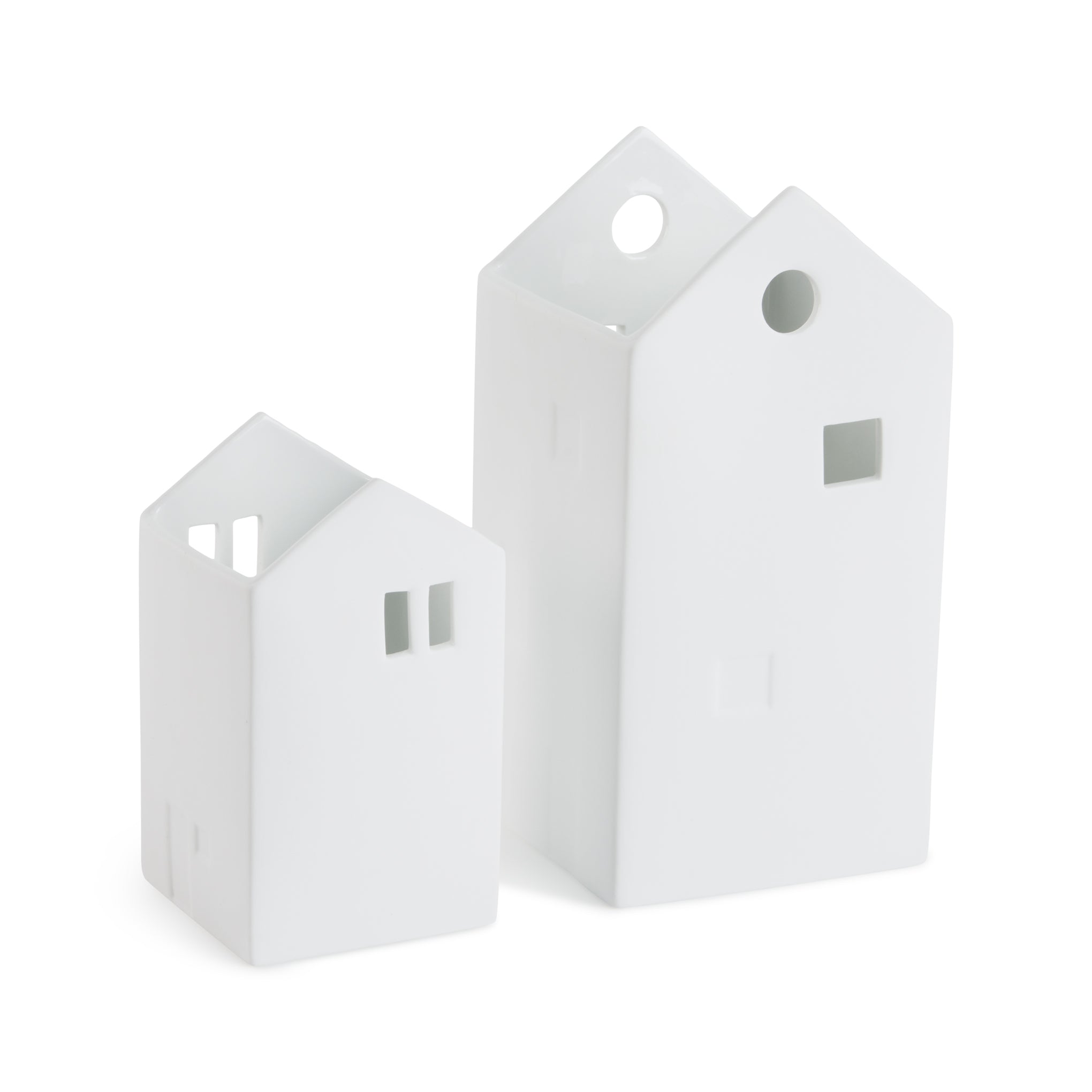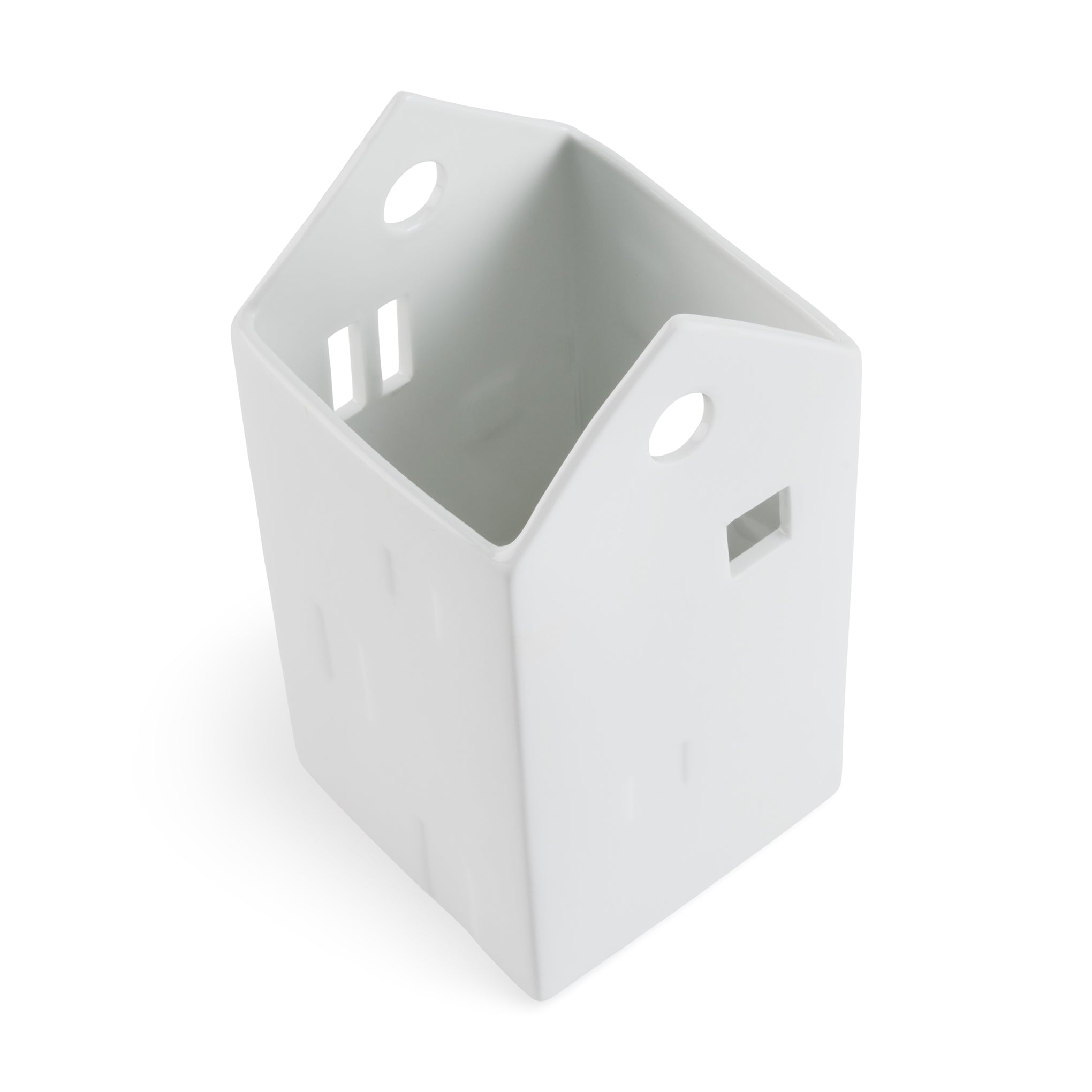 Invite this charming. minimalist house into your home. Crafted from porcelain. the Village House Porcelain Vase is a sweet home for your favorite flower arrangements. The vase is unglazed on the outside and glazed on the inside for a subtle. yet striking contract. and features windows that are cut-out or embossed. The Village House Porcelain Vase can also be used to store utensils in your kitchen. as a desk organizer. as a catchall for small trinkets or accessories or as a simple. charming decoration on your windowsill.