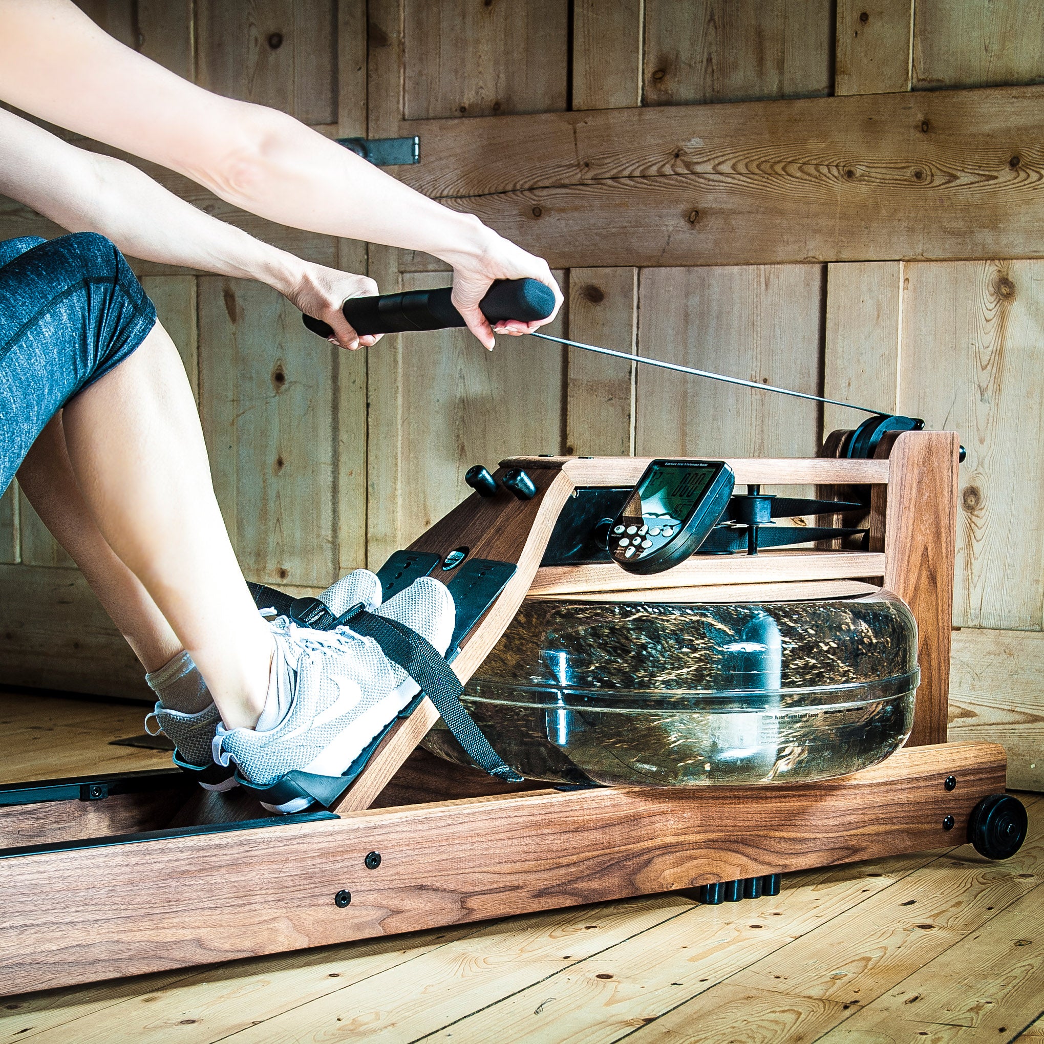 Wood as a material was chosen for the design of the WaterRower because it provides a smooth and quiet exercise experience by absorbing sound and vibrations. The WaterRower is much quieter than air rowers and produces a meditative sound as you row. The wood of the WaterRower has been hand-finished with three coats of Danish oil. adding warmth. deep luster and an overall aesthetic appeal. While there are other water rowers on the market. the WaterRower Rowing Machine is the original—and it has revolutionized the home rowing machine experience.