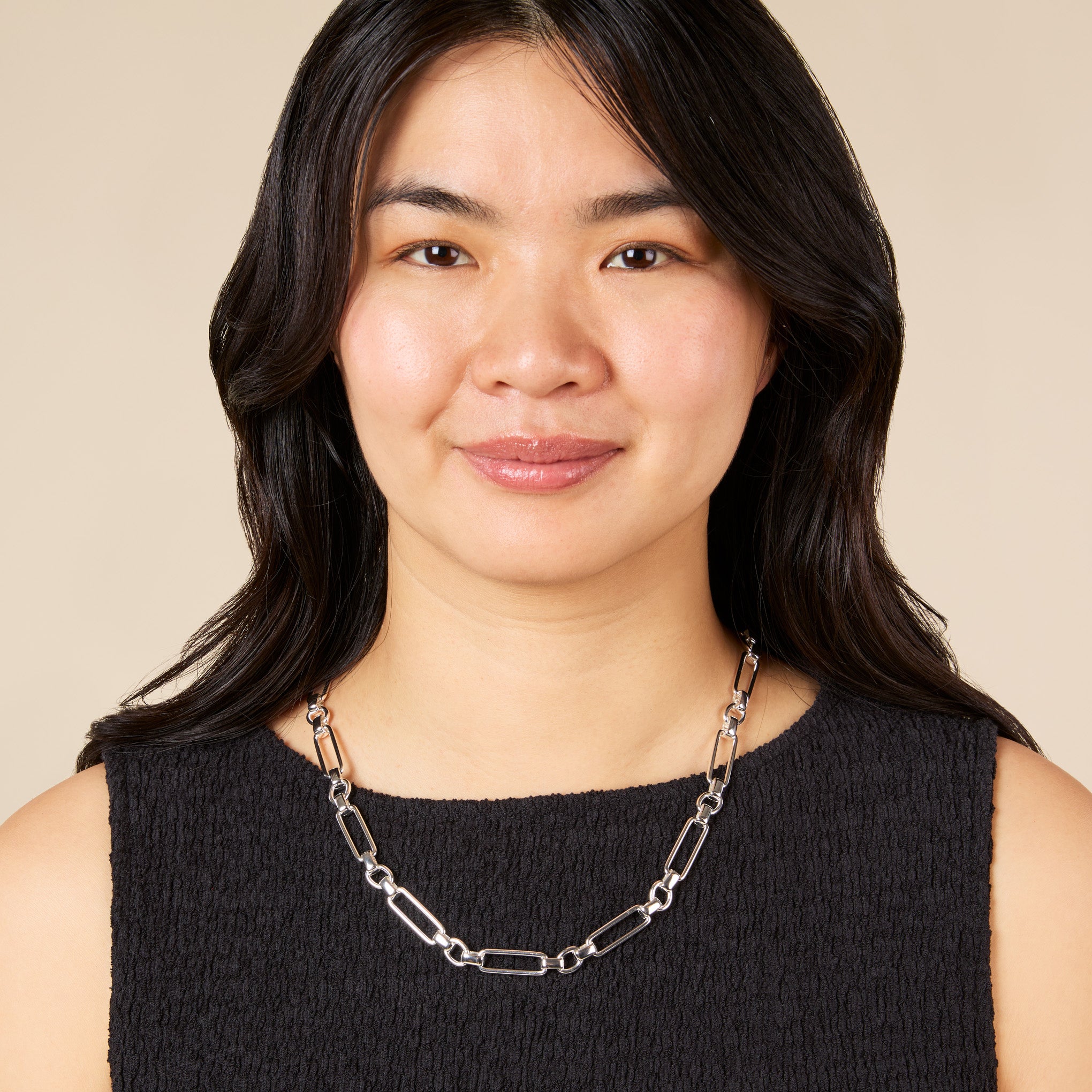 Designer Morgan Thomas??founder of Black-owned. women-operated brand Yam??is dedicated to creating jewelry that feels both new and nostalgic. combining upcycled materials with vintage silhouettes. Handmade in New York City. the Highgate Choker has a chunky silver-plated brass chain and a toggle clasp that can be worn short or long as well as in the front or the back. This versatile lariat-style design is like having two necklaces in one. Wear yours to add a playful twist to everyday outfits. The Yam Highgate Silver-Plated Choker Necklace measures 24l.